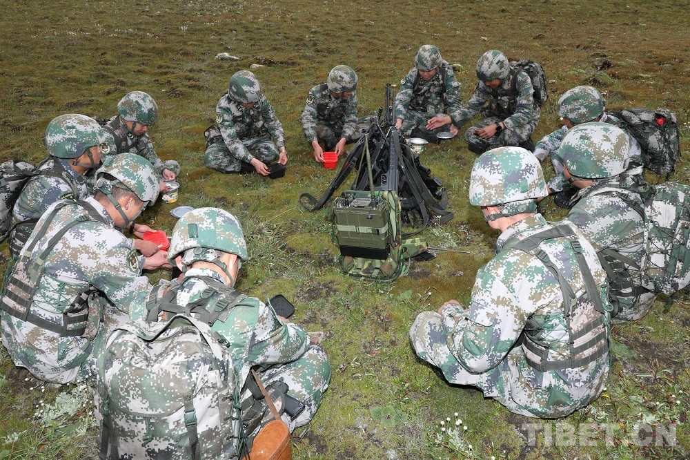 到達19號界樁后,巡邏官兵們坐在一起,拿出干糧,補充體力。在海拔5000多米的地方,連續(xù)翻山越嶺,體力嚴重透支,有些官兵一度出現(xiàn)高反,幸虧被戰(zhàn)友及時發(fā)現(xiàn),吸氧緩解后,大家開始向最終目的地18號界樁進發(fā)。