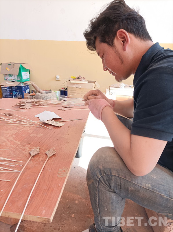 圖為仁俊熱貢藝術(shù)學(xué)院的學(xué)徒在制作泥塑作品