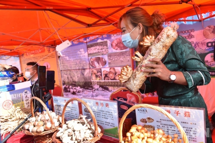 豐收的成果就要“曬”出來。一邊是精彩紛呈的表演,一邊則是品種豐富的現(xiàn)場展示。在活動現(xiàn)場,19個鄉(xiāng)鎮(zhèn)和10多個龍頭企業(yè)的上百種特色優(yōu)質(zhì)農(nóng)產(chǎn)品搬上各自的展臺,華藏寺鎮(zhèn)的蕨麻豬肉、打柴溝鎮(zhèn)的高原夏菜、炭山嶺鎮(zhèn)的羊羔肉、抓喜秀龍鎮(zhèn)的白牦牛肉、松山鎮(zhèn)的滑子菇、天堂鎮(zhèn)的中藥材、西大灘鎮(zhèn)的百合、大紅溝鎮(zhèn)的藏地雪雞等都是游客們爭相品嘗購買的“香餑餑”?!斑@是天祝白牦牛肉干,歡迎大家選購品嘗?!背爽F(xiàn)場人頭攢動,線上直播也是一片熱鬧。在直播帶貨現(xiàn)場,20多名網(wǎng)紅在直播中為天祝農(nóng)特產(chǎn)品 “吆喝”,深入挖掘本地原產(chǎn)經(jīng)濟,通過直播新技術(shù)帶動農(nóng)牧民群眾創(chuàng)業(yè)增收。
