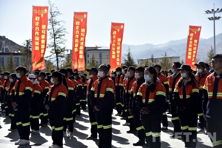 圖為墨竹工卡縣大中專(zhuān)畢業(yè)生赴福州大學(xué)定向委培啟動(dòng)儀式