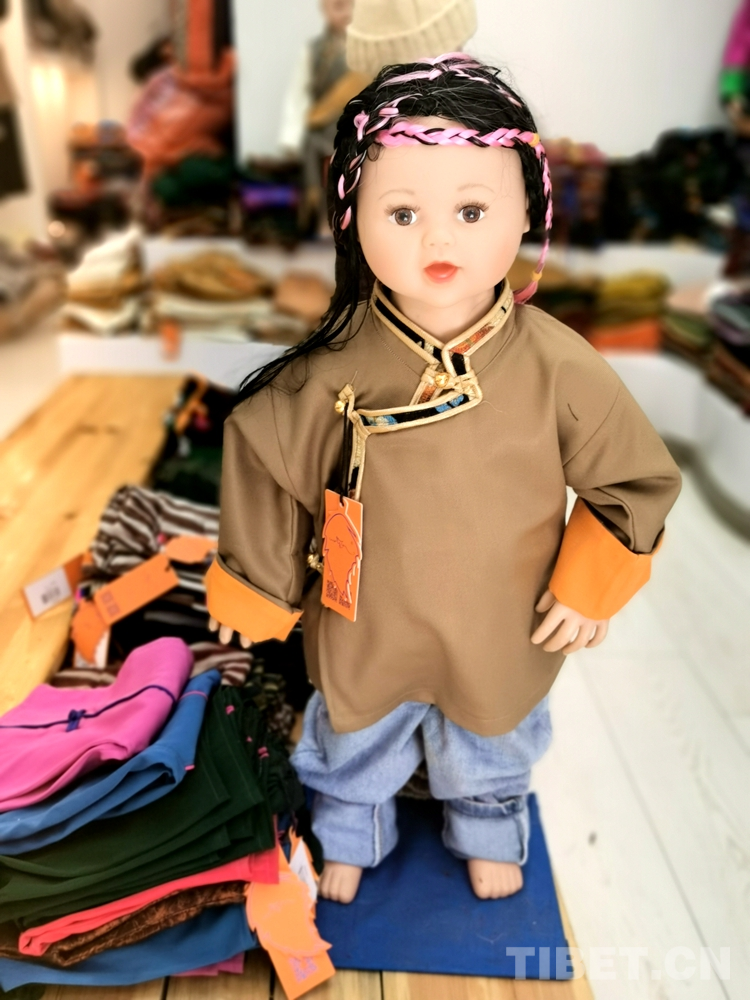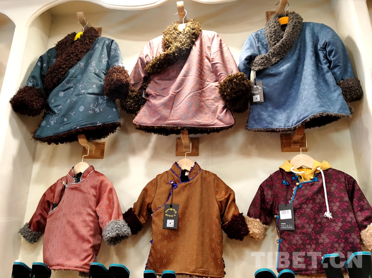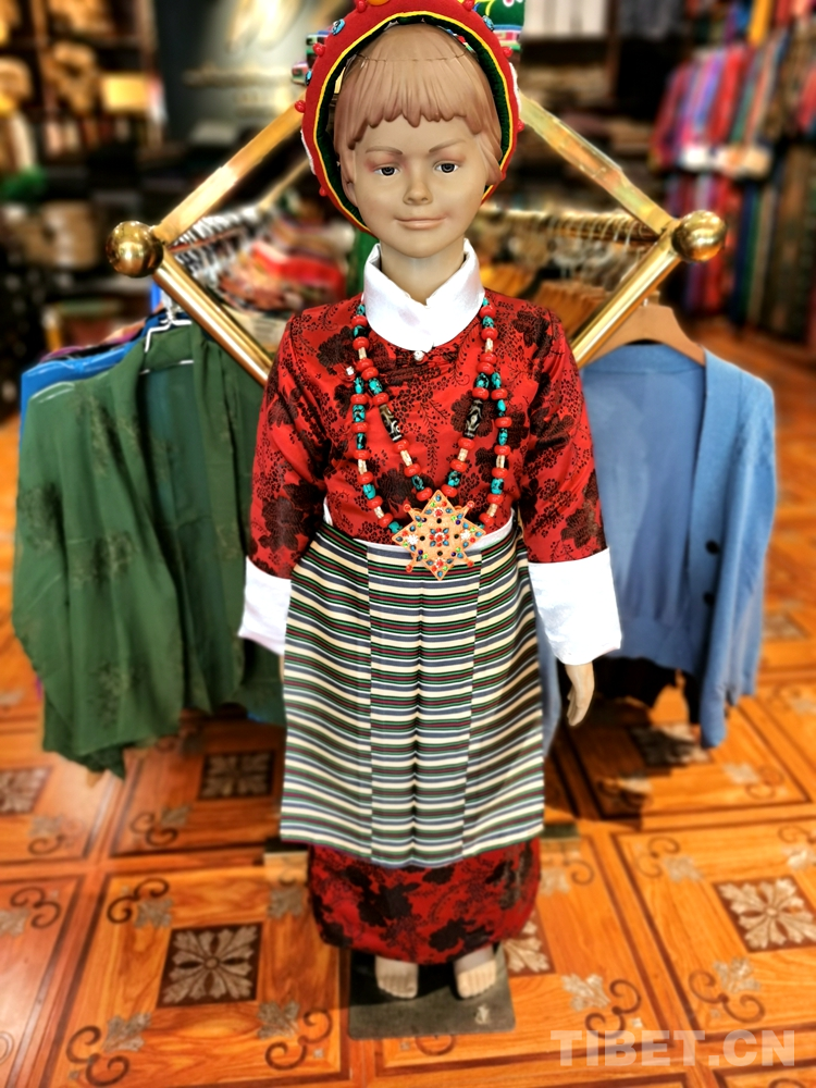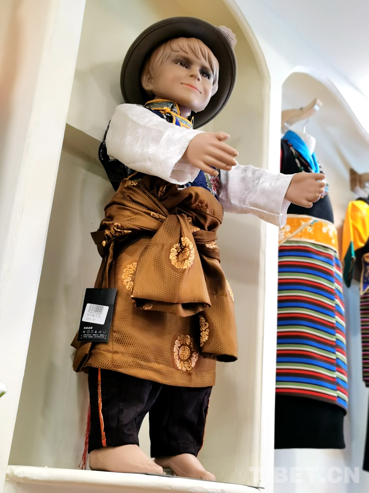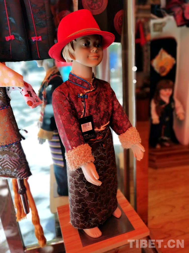 變化在時光中悄然發(fā)生。829藏裝店店員次旺扎西興奮地介紹說,近年來藏裝在質(zhì)和量上都發(fā)生了巨變,藏裝市場也在規(guī)范、體量、創(chuàng)新等方面進一步發(fā)展,外來游客也特別喜愛,并常常有定制需求。富有民族特色的藏式童裝成了時尚圈追捧的一種特色民族元素。