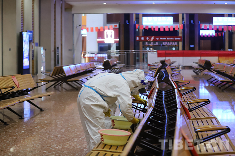 圖為拉薩火車(chē)站組織在站集中管理的干部職工分組分區(qū)進(jìn)行站區(qū)衛(wèi)生全面清理 攝影:李海星