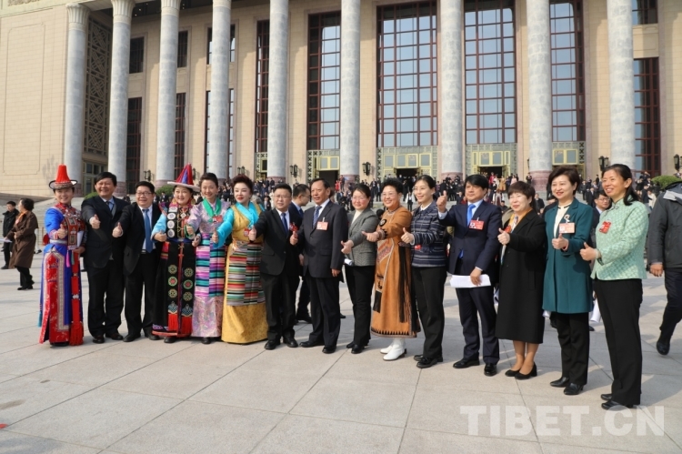 圖為3月10日,中國人民政治協(xié)商會議第十四屆全國委員會第二次會議閉幕后,少數(shù)民族界別全國政協(xié)委員點贊留影 攝影:王茜