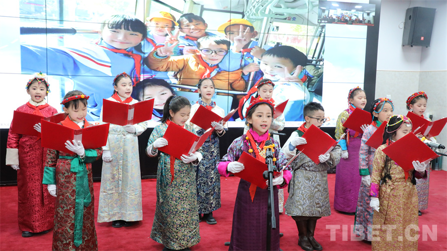 圖為拉薩市實(shí)驗(yàn)小學(xué)和北京市海淀區(qū)中關(guān)村第二小學(xué)共同舉辦的“銘記歷史感黨恩 做新時(shí)代好少年”暨“西藏百萬(wàn)農(nóng)奴解放紀(jì)念日誦讀歌詠活動(dòng)”