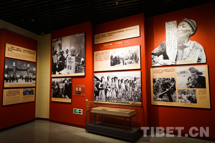 “西藏百萬農(nóng)奴解放紀(jì)念館日喀則分館”面積1165平方米,在西藏百萬農(nóng)奴解放紀(jì)念館展陳腳本的基礎(chǔ)上,適當(dāng)融入了發(fā)生在日喀則大地上的民主改革等重大歷史事件,特別是融入了黨的十八大以來日喀則發(fā)展成就等內(nèi)容。展廳采用幻影成像技術(shù),生動再現(xiàn)“桑登分得土地”“桑登乞討圖”等新舊對比場景,全面集中反映了中國共產(chǎn)黨帶領(lǐng)西藏各族人民進(jìn)行偉大民主改革,百萬農(nóng)奴翻身獲得解放的偉大歷史變革。