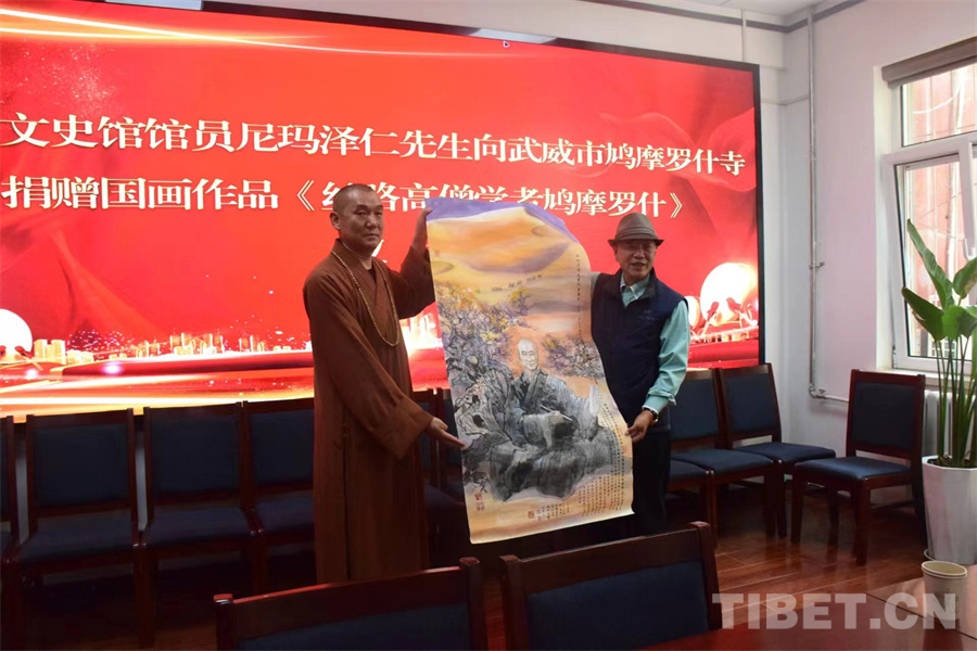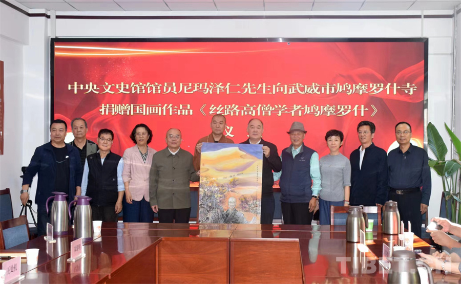 中國(guó)西藏網(wǎng)訊 9月23日,甘肅省武威市鳩摩羅什寺在蘭州舉辦《絲路高僧學(xué)者鳩摩羅什》國(guó)畫作品捐贈(zèng)儀式,該作品由著名藏族畫家尼瑪澤仁捐贈(zèng)。