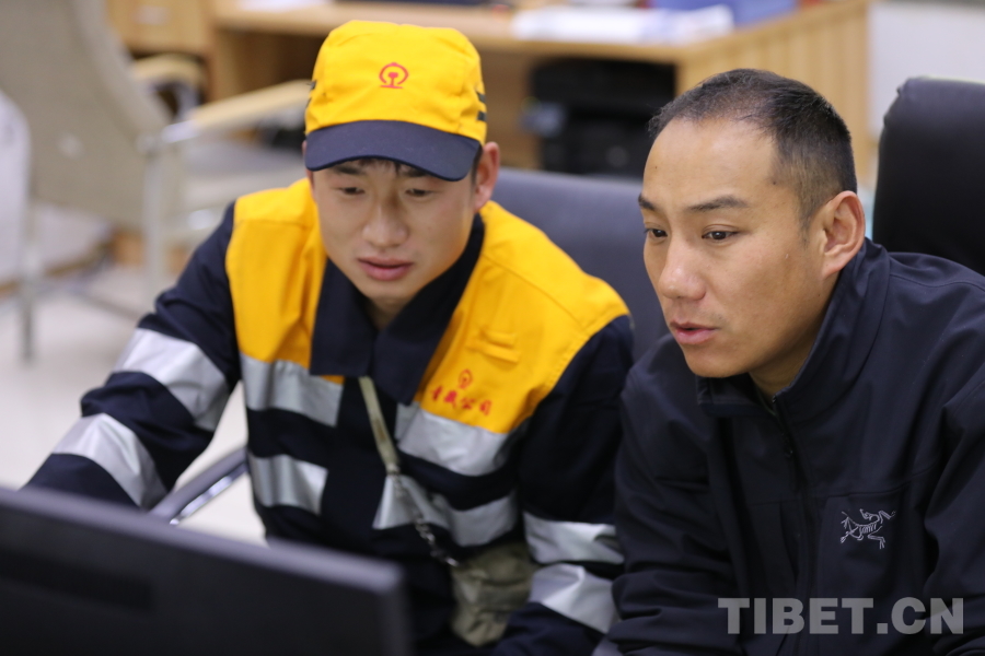 圖為拉薩火車站青年職工張雪峰(左) 攝影:格桑央金