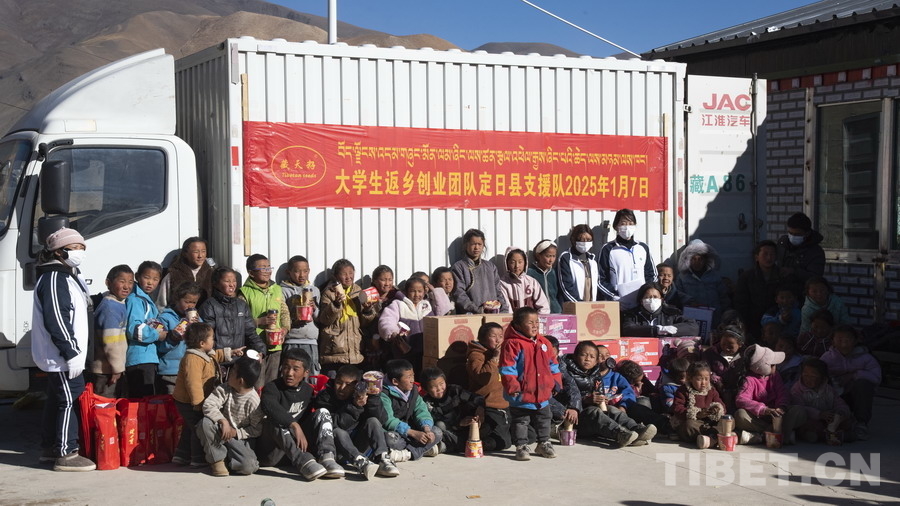 中國西藏網訊 1月8日,在日喀則市定日縣長所鄉(xiāng)嘎旦村村委會院內,一群身著統(tǒng)一白色服飾的年輕人和小朋友們合影的畫面引起了我們的注意。這是一群西藏返鄉(xiāng)創(chuàng)業(yè)的大學生,在拉薩市當雄縣烏瑪塘鄉(xiāng)巴嘎村內開辦了一家名叫西藏姆蘭的農業(yè)合作社。本還是孩子的他們,卻選擇來到定日縣“1·07”地震中受災最為嚴重的鄉(xiāng)鎮(zhèn)之一的長所鄉(xiāng)去幫助另一群孩子,為地震災區(qū)帶來屬于“00后”的溫暖。