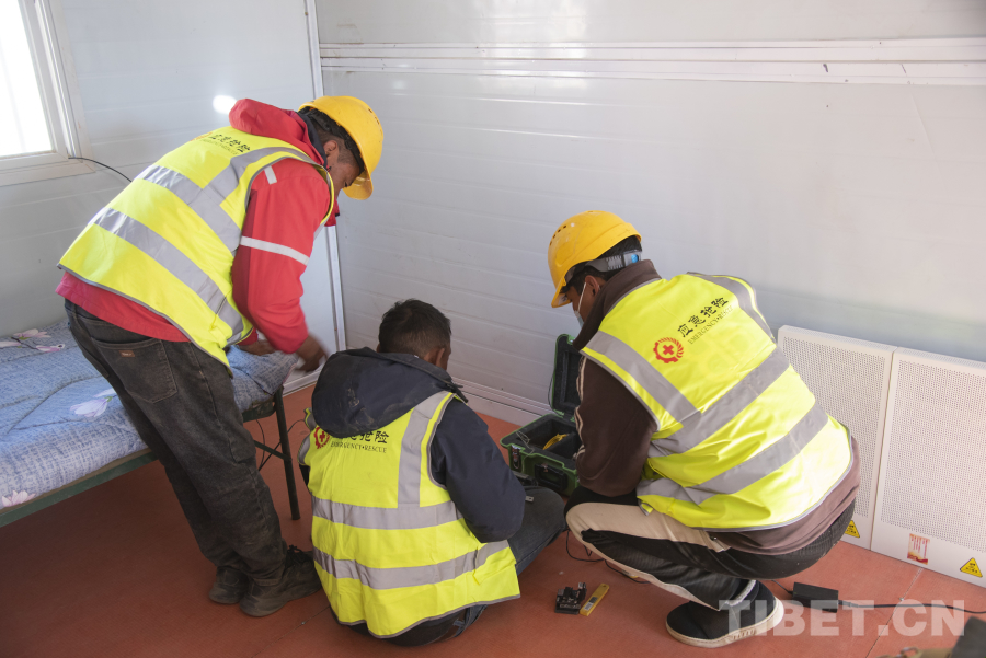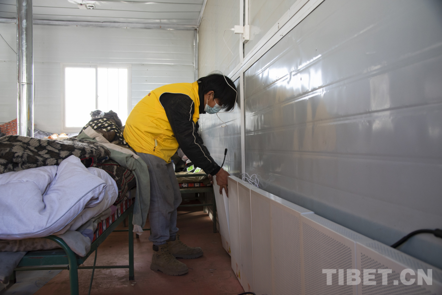圖為工作人員正在古榮村安置板房內(nèi)安裝電暖器 攝影:趙振宇