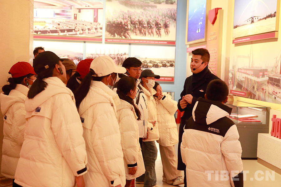 圖為2月15日,來自西藏阿里地區(qū)邊境縣的31名師生在中國人民革命軍事博物館聆聽講解 攝影:陳衛(wèi)國