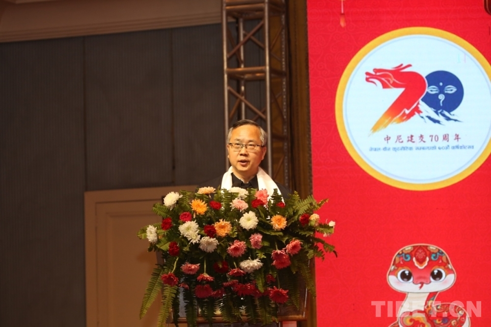 圖為中國駐尼泊爾大使陳松發(fā)表新年致辭 攝影:蘇尼爾·夏爾馬