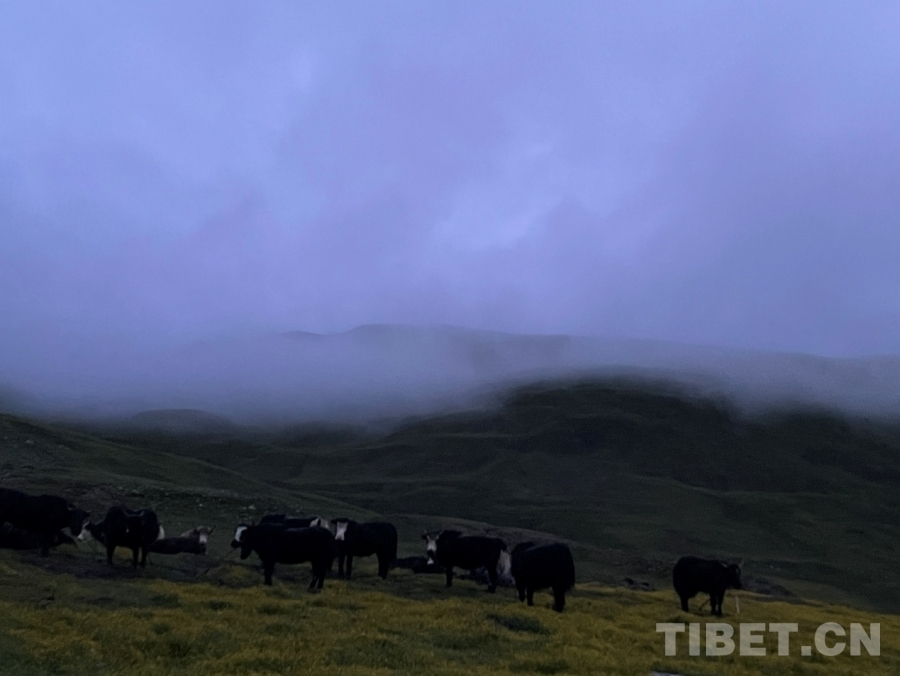 過了一會(huì)兒,天邊漸漸卷起了一個(gè)白邊,然后越來越大。后來,遠(yuǎn)處的山、河、帳篷、牛羊都逐漸清晰了。這時(shí),我們的工作也接近尾聲。一回頭,看到我家?guī)づ耥數(shù)臒焽枥锷鹆搜U裊炊煙,我知道,爸爸已經(jīng)準(zhǔn)備好了早餐,等著我們回家了。(中國西藏網(wǎng) 實(shí)習(xí)生/扎西央措)