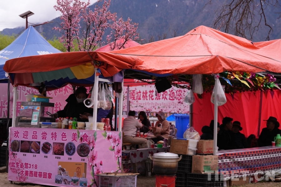 帳篷里,隔壁卡斯木村的村民德吉正忙著給客人做藏面。“桃花節(jié)期間,收入會比平時多三四倍?;ㄆ谶^后,根據(jù)營業(yè)天數(shù)向嘎拉村付租金就可以。”