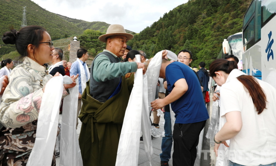 圖為5月15日,部分參加“同心·共鑄中國心”2025阿壩行大型公益活動的醫(yī)務(wù)志愿者抵達四川省阿壩州馬爾康市。馬爾康市群眾向醫(yī)務(wù)志愿者們敬獻哈達 攝影:劉莉