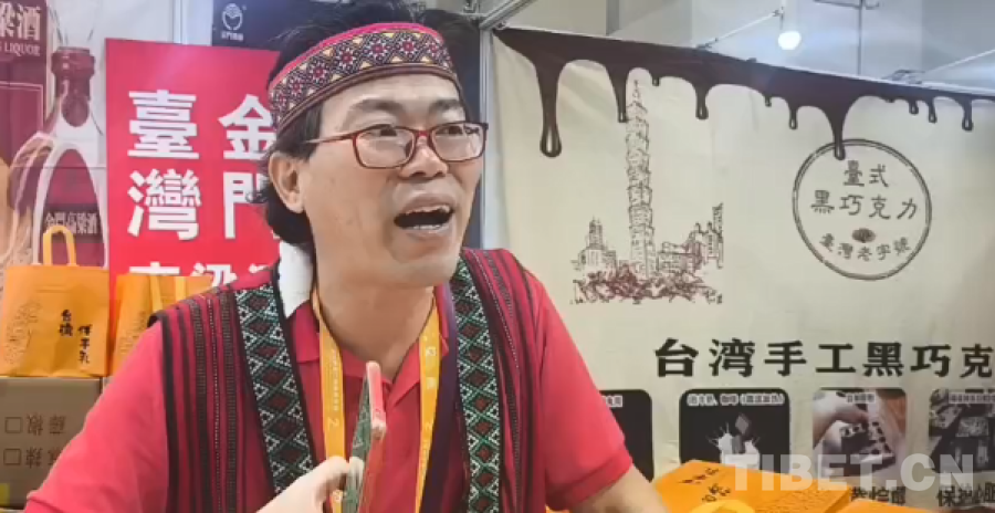 圖為5月16日,第二屆拉薩進(jìn)口商品展覽會(huì)上,臺(tái)灣商人“洋蔥哥”講述自己在大陸做生意的經(jīng)歷 攝影:趙釗