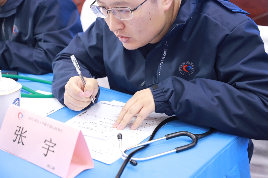 圖為北京市通州區(qū)婦幼保健院藥劑科主任馬月靜根據(jù)現(xiàn)場(chǎng)情況做相應(yīng)記錄。此次義診結(jié)束后,馬月靜還為干警們進(jìn)行了安全用藥科普知識(shí)講座 攝影:楊月云