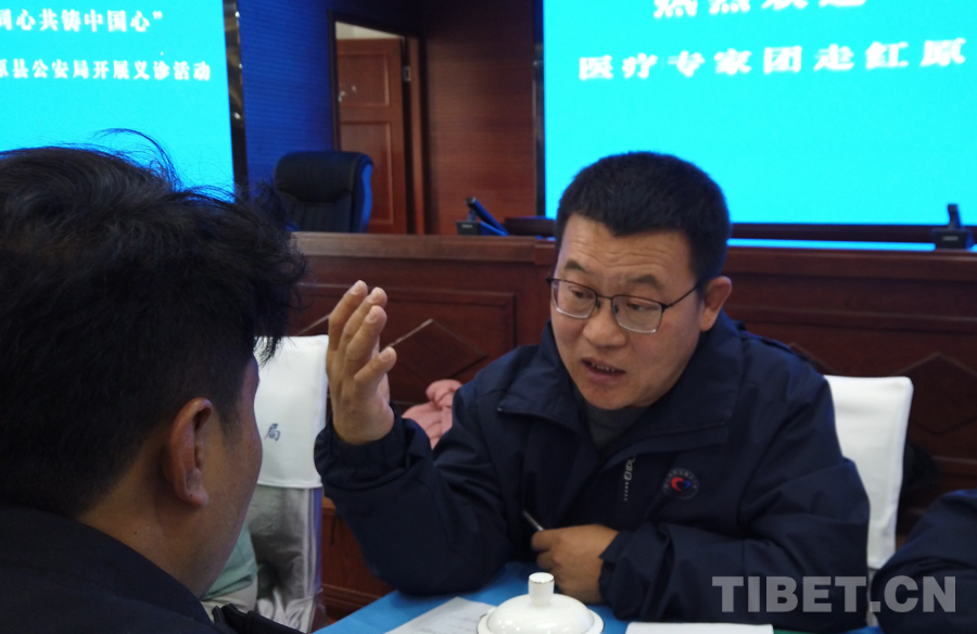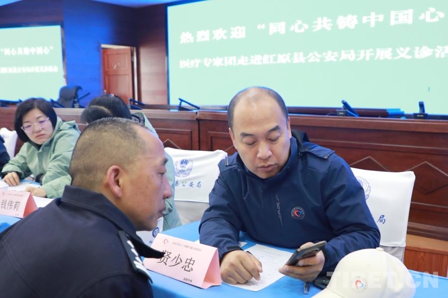 5月17日,在此次活動(dòng)阿壩州紅原縣現(xiàn)場(chǎng)之一,“紅九團(tuán)紅二連”來(lái)自北京通州區(qū)各醫(yī)院的12位醫(yī)生,在紅原縣公安局面向有就診需求的公安干警展開(kāi)義診。