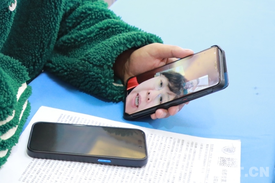 圖為患者通過(guò)尹超邦的手機(jī)連線北京專(zhuān)家,咨詢(xún)下一步診療方案 攝影:楊月云
