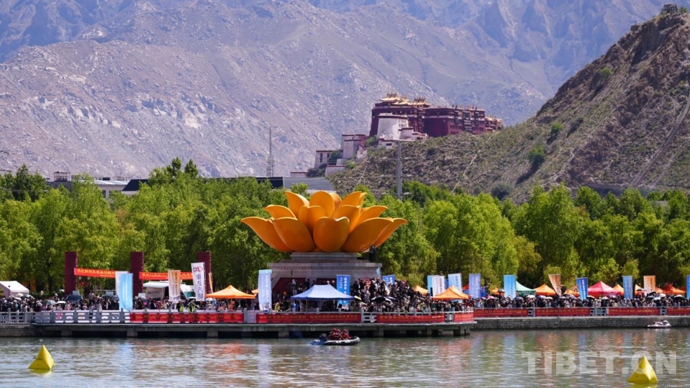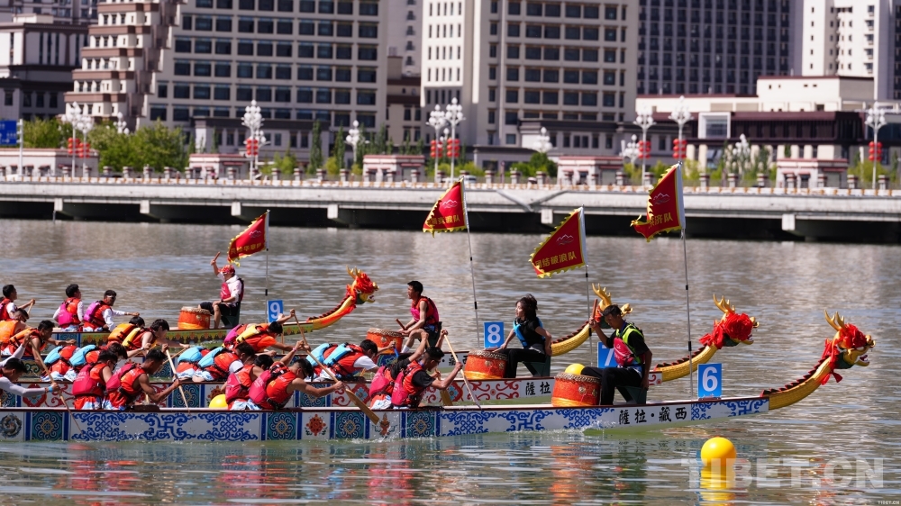 圖為龍舟賽比賽現(xiàn)場 攝影:德吉卓瑪
