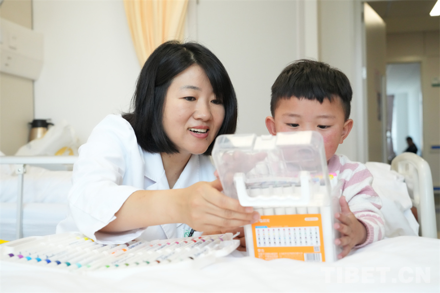 6月10日,小卓瑪在北京的治療告一段落,可以出院了。協(xié)會會長金書波等相關負責人和醫(yī)院的陳偉、韓正學等前來看望小卓瑪。此時的她已經(jīng)沒有了初來醫(yī)院的緊張和羞澀,她覺得協(xié)會的爺爺奶奶、醫(yī)院的叔叔阿姨,都是她的親人和朋友。她舍不得摘下協(xié)會爺爺帶上的哈達,拿著醫(yī)生阿姨送的畫筆寫寫畫畫,用還生澀的普通話跟醫(yī)生護士一個一個打招呼、擊掌,說“你好”“謝謝”……小小的身影在明亮舒適的病房里跑來跑去,笑聲清脆,充滿了活力。