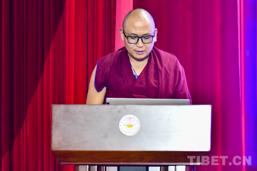 來自西藏佛學院的經(jīng)師阿旺桑珠作了題為《著<辨了不了義論>的歷史背景及其影響》的報告,以探討《辨了不了義論》的創(chuàng)作環(huán)境與歷史背景為起點,論述該經(jīng)典從主題到用語,都以推動藏傳佛教健康發(fā)展為出發(fā)點,承擔起從了義、不了義角度闡釋佛教教義的重任,填補了藏傳佛教此前沒有相關(guān)著作的空白。