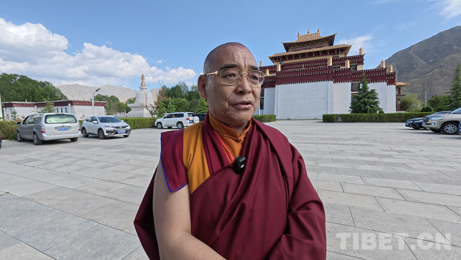 圖為中國佛教協(xié)會西藏分會駐會副會長班典頓玉接受采訪 攝影:趙振宇