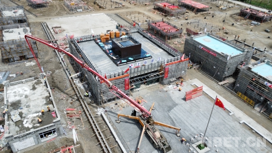圖為日喀則市拉孜縣錫欽鄉(xiāng)崗西村災(zāi)后重建現(xiàn)場