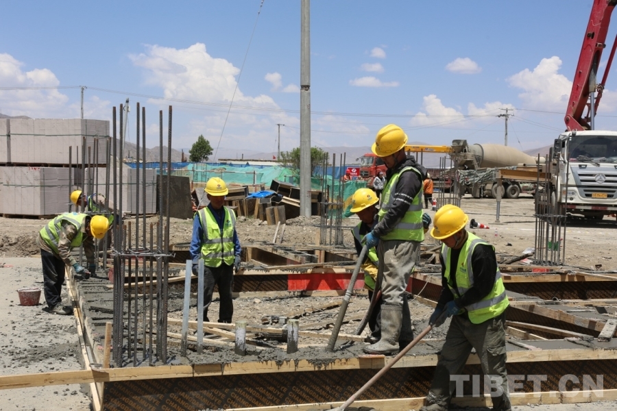 圖為拉孜縣錫欽鄉(xiāng)夏拉蘇村災(zāi)后重建現(xiàn)場