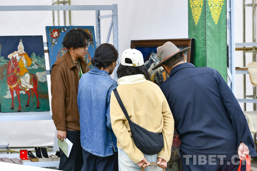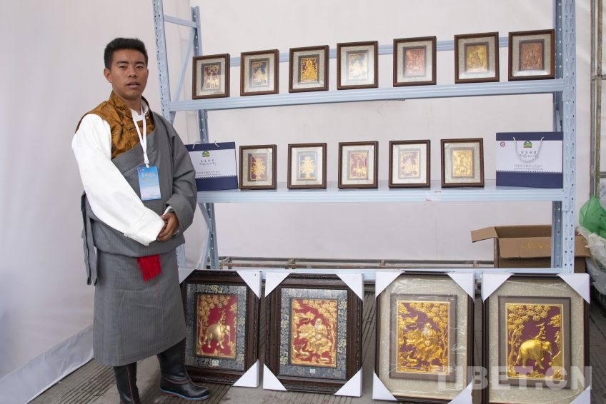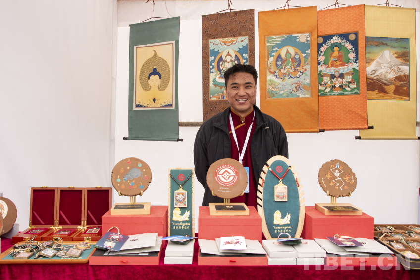 在集市的另一頭,是昌都市瑪吉阿媽唐卡畫院所展出的唐卡漆畫。“漆畫具有繪畫和工藝的雙重屬性。我們畫院主要是傳承嘎瑪嘎赤畫派的藝術(shù)作品,但近年來我們將傳統(tǒng)畫派藝術(shù)和福建漆畫進行了有機結(jié)合,以漆畫的工藝結(jié)合唐卡的審美,創(chuàng)作出一系列作品。這些唐卡漆畫不僅在西藏很受歡迎,也有其他省份的人士向我們定制?!倍嗉嬖V記者,每一件唐卡漆畫都融合了西藏傳統(tǒng)故事、傳說等文化內(nèi)涵,不僅是一件藝術(shù)品,更是向外界展示西藏優(yōu)秀傳統(tǒng)文化的窗口。