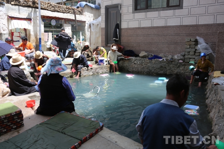 圖為從謝通門縣達那答鄉(xiāng)頂嘎村來泡溫泉的群眾