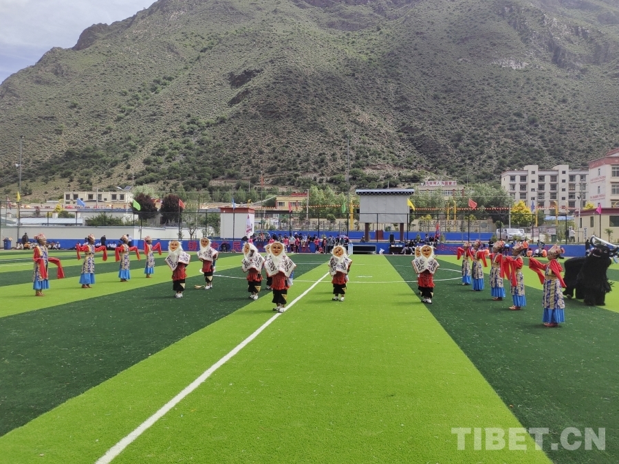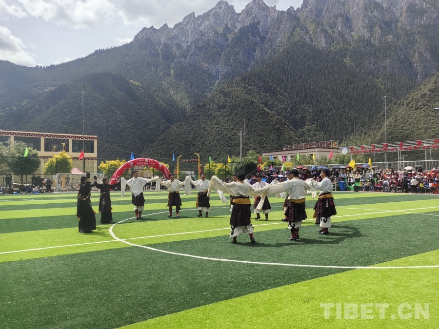 圖為西藏洛隆縣達龍鄉(xiāng)第二屆中遠海運鄉(xiāng)村足球聯(lián)賽“吉祥杯”開幕式上的舞蹈表演