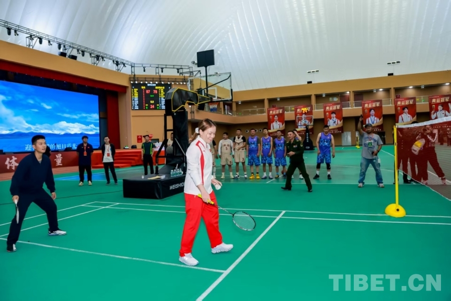 圖為奧運冠軍一行來到西藏軍區(qū)某部