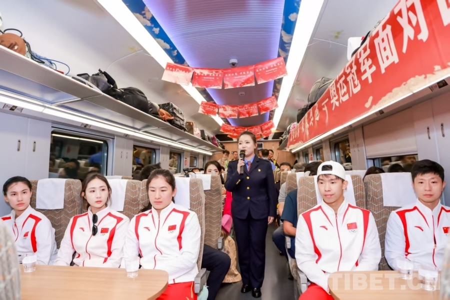中國(guó)西藏網(wǎng)訊 7月19日,由中共中央宣傳部、國(guó)家體育總局聯(lián)合主辦的“決勝巴黎·綻放奧運(yùn)——奧運(yùn)冠軍面對(duì)面”巡回宣講活動(dòng)走進(jìn)西藏拉林鐵路。奧運(yùn)冠軍馬龍等走進(jìn)林芝火車站,與鐵路職工、沿線群眾、旅客近距離互動(dòng),在雪域天路上,讓中華體育精神與青藏鐵路精神交相輝映。