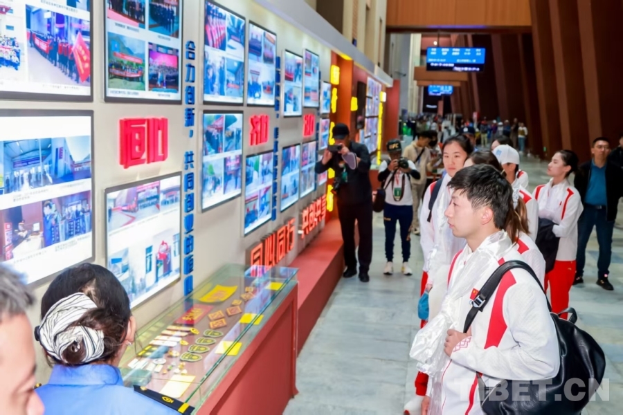 下午4時(shí)30分,列車抵達(dá)拉薩站。奧運(yùn)冠軍們走進(jìn)青藏鐵路精神文化長(zhǎng)廊,在一幅幅老照片、一件件老物件前駐足?!斑@是建設(shè)者用過的氧氣瓶,那是第一列進(jìn)藏列車的車票……”講解員聲情并茂的講述令在場(chǎng)的運(yùn)動(dòng)員感動(dòng)不已。