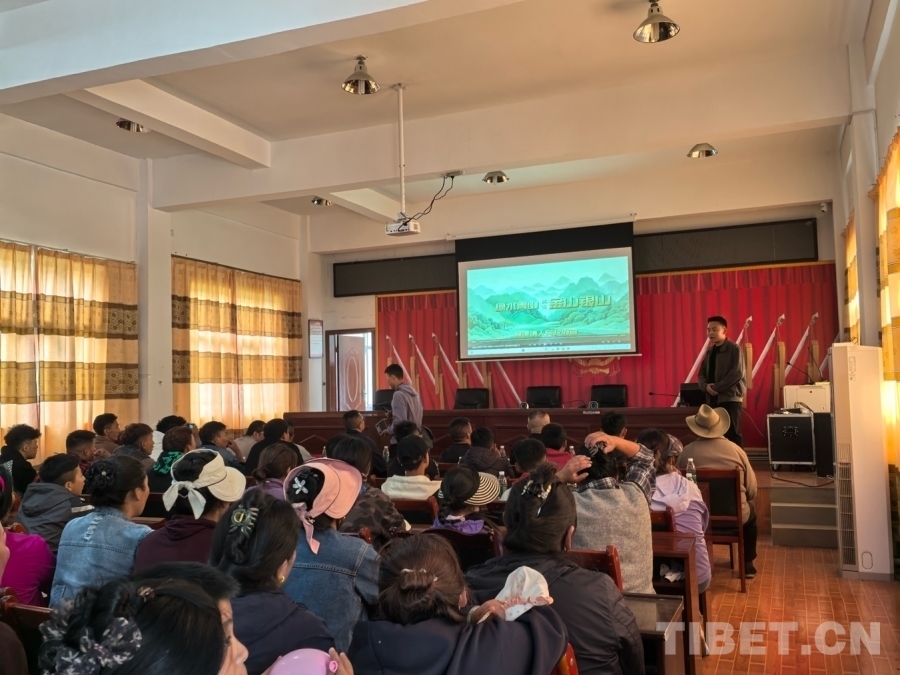 圖為群眾觀看藏語(yǔ)配音的環(huán)保宣傳片《大自然在說(shuō)話》