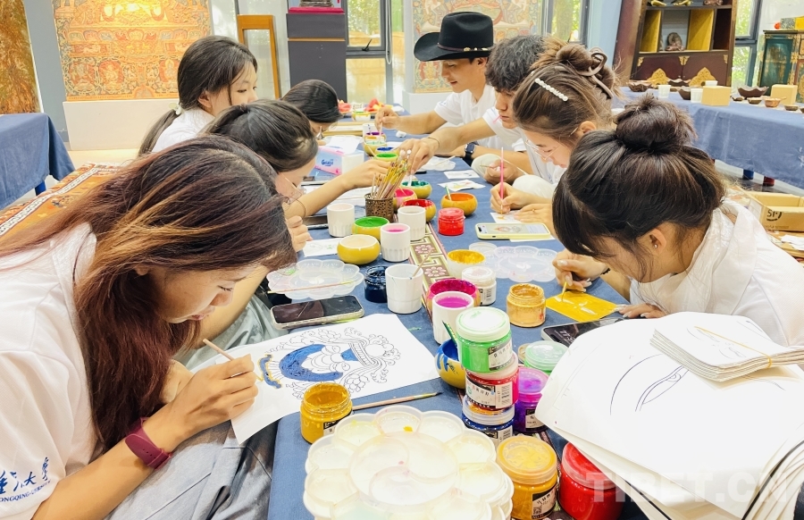 圖為重慶大學(xué)“格?;ā编l(xiāng)村振興調(diào)研實(shí)踐活動(dòng)之藏式繪畫(huà)體驗(yàn) 重慶大學(xué)供圖