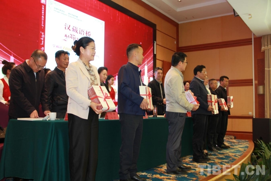 中國西藏網(wǎng)訊 在喜迎西藏自治區(qū)成立60周年之際,8月13日,《漢藏語橋:學(xué)藏語1000句+》新書發(fā)布會暨贈書儀式在拉薩舉行?;顒蝇F(xiàn)場,西藏自治區(qū)政府副主席、自治區(qū)藏語委副主任甲熱·洛桑丹增等向自治區(qū)藏語委成員單位、相關(guān)單位及街道、社區(qū)、村居代表贈送《漢藏語橋:學(xué)藏語1000句+》570冊。