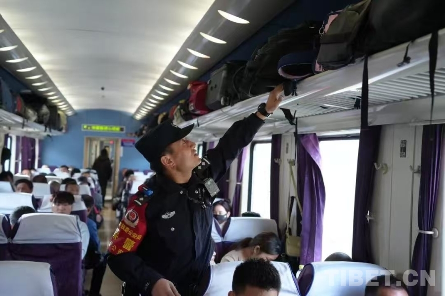 “看好自己的包!貴重物品貼身保管,不要大意了?!薄巴砩纤X,各位一定要蓋好被子,高反很嚴(yán)重!”……拉薩鐵路公安處乘警米瑪次仁的“碎碎念”,是高原列車上最動(dòng)聽的序曲。他的腳步在車廂過(guò)道里來(lái)回穿梭,一句句叮囑如同細(xì)密的針腳,慢慢織進(jìn)旅客的旅途里。
