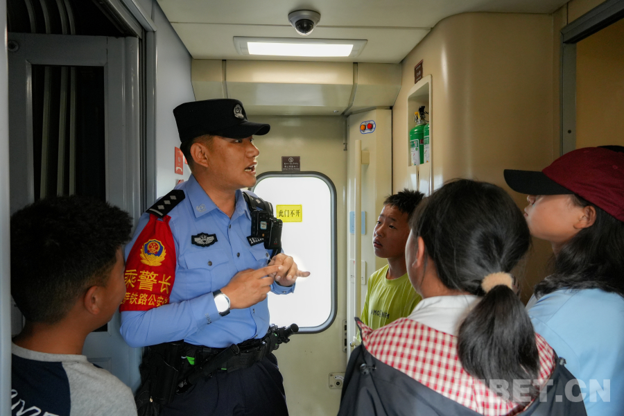 米瑪次仁的提醒并非漫無(wú)目的。在海拔數(shù)千米的高原列車中,每一句叮嚀都凝結(jié)著他多年乘警生涯的智慧結(jié)晶。旅客們不經(jīng)意間放錯(cuò)位置的背包、隨手?jǐn)R在座椅上的手機(jī)、放在洗漱臺(tái)充電的電子設(shè)備、敞口的行李袋……在他眼中都是潛在的風(fēng)險(xiǎn)點(diǎn)。“嘮叨”的背后,是沉甸甸的責(zé)任?!坝腥魏芜`法侵權(quán)問(wèn)題第一時(shí)間報(bào)警,我們民警24小時(shí)在線!特別是盜竊、猥褻等違法行為,請(qǐng)務(wù)必第一時(shí)間報(bào)警,維護(hù)自身合法權(quán)益!”他句句在理的安全提示,帶著不容置疑的關(guān)切力量。高原旅途的平安密碼,就藏在他這些看似零碎的念叨里:“東西看緊點(diǎn),出門在外,平安是福氣!”當(dāng)車廂廣播響起前方站點(diǎn)信息,米瑪次仁的聲音也隨之流淌:“行李物品再檢查一遍,下車別遺漏!”目光掃過(guò)每一張面孔,將每一位旅客平安送達(dá)的信念,已融入他的血脈。