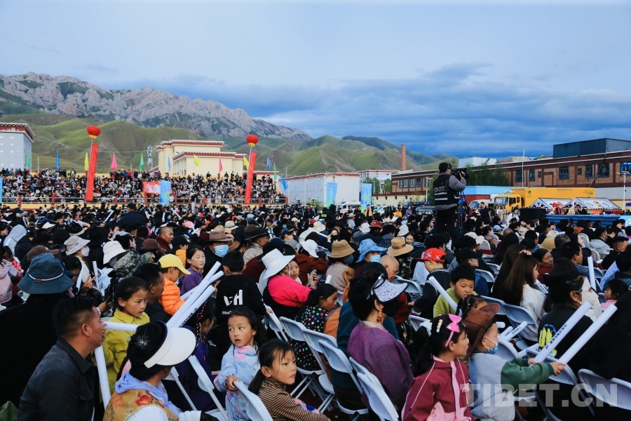 圖為啟幕儀式現(xiàn)場(chǎng)座無虛席,為囊謙縣群眾帶來一場(chǎng)跨越地域的文化盛宴與視聽體驗(yàn)。攝影:龍真多吉