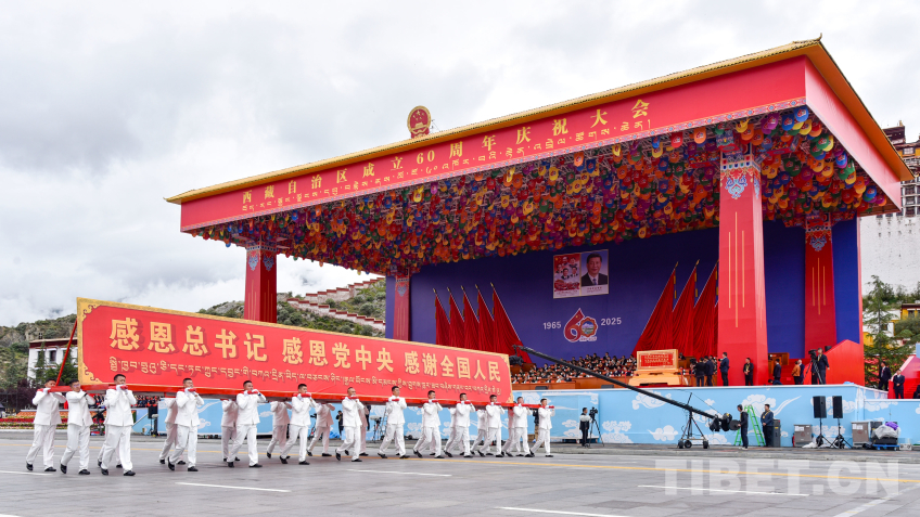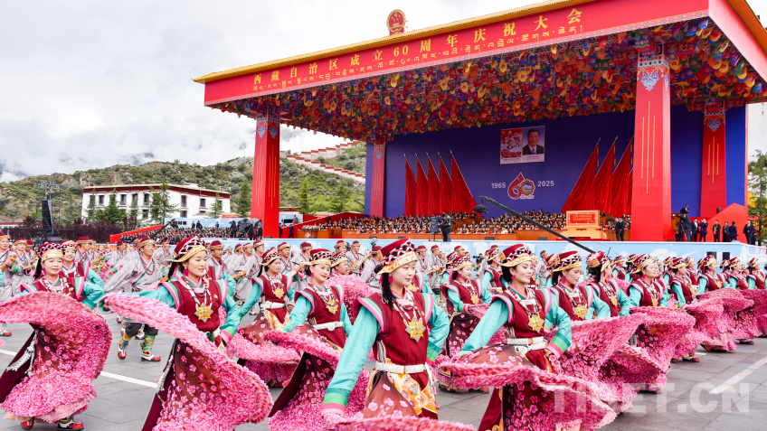 中國西藏網(wǎng)訊 8月21日上午,西藏自治區(qū)成立60周年慶祝大會在拉薩隆重舉行。慶祝大會舉行充滿吉祥喜慶氣氛的盛大群眾游行。游行分為“旗幟引領”“四件大事”“奮進新時代”“走向未來”4個單元,26個群眾游行方隊、彩車,在歡快的音樂中依次行進。各族群眾身著絢麗多彩的服飾,跳起熱情歡快的舞蹈,表達過上幸福生活的喜悅之情、對黨和國家的感恩之情。(中國西藏網(wǎng) 記者/王淑 趙振宇 德吉卓瑪 次旦拉姆 旦曲 賈華加 趙釗 姚浩然 劉莉 邊子捷 馮重霖 楊眉笑)