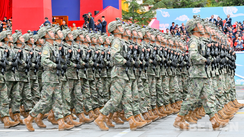 圖為西藏自治區(qū)成立60周年慶祝大會解放軍方隊 攝影:趙振宇