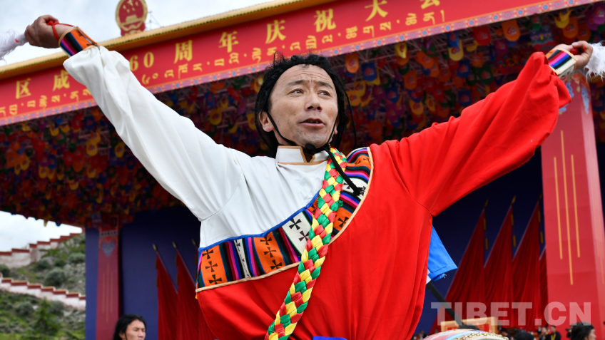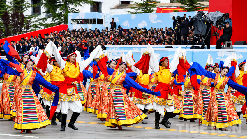 圖為西藏自治區(qū)成立60周年慶祝大會群眾游行 攝影:趙振宇
