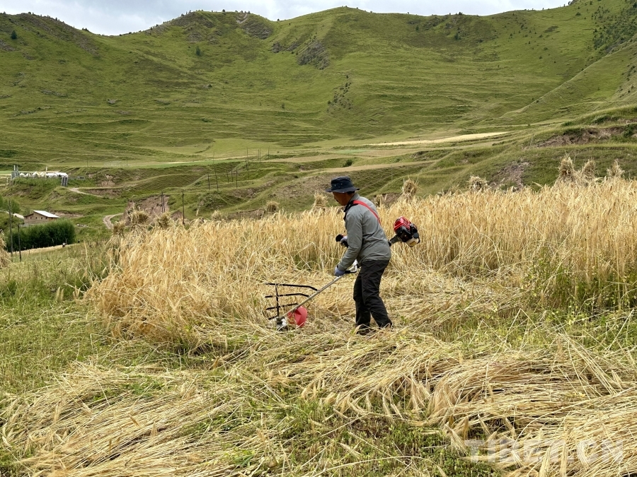 圖為村民們正在收割成熟的黑青稞 攝影:畢然