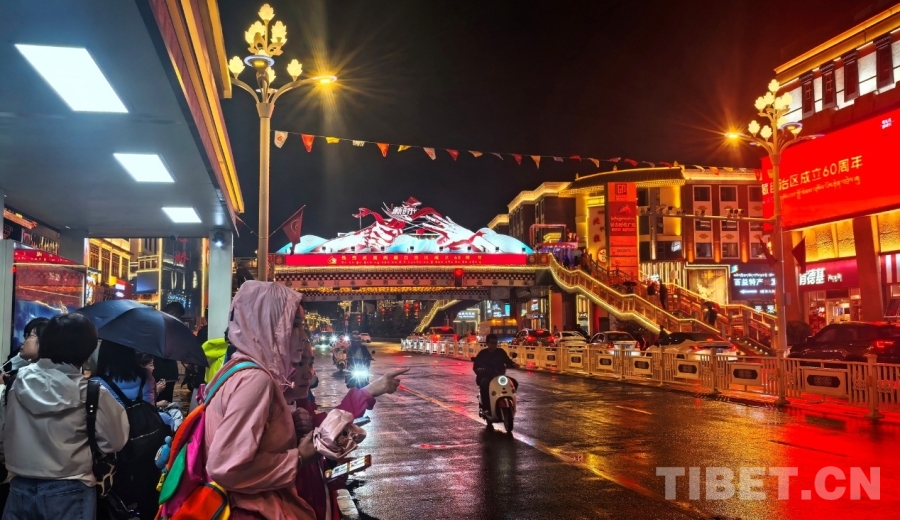 車窗外,燈火璀璨,各色店招牌與為了慶祝西藏自治區(qū)成立60周年新?lián)Q的燈牌、彩旗交相輝映,令雨后的拉薩更顯靈動剔透。于師傅由衷地感慨:“拉薩真美啊。這次你們來旅游真是太合適了。”