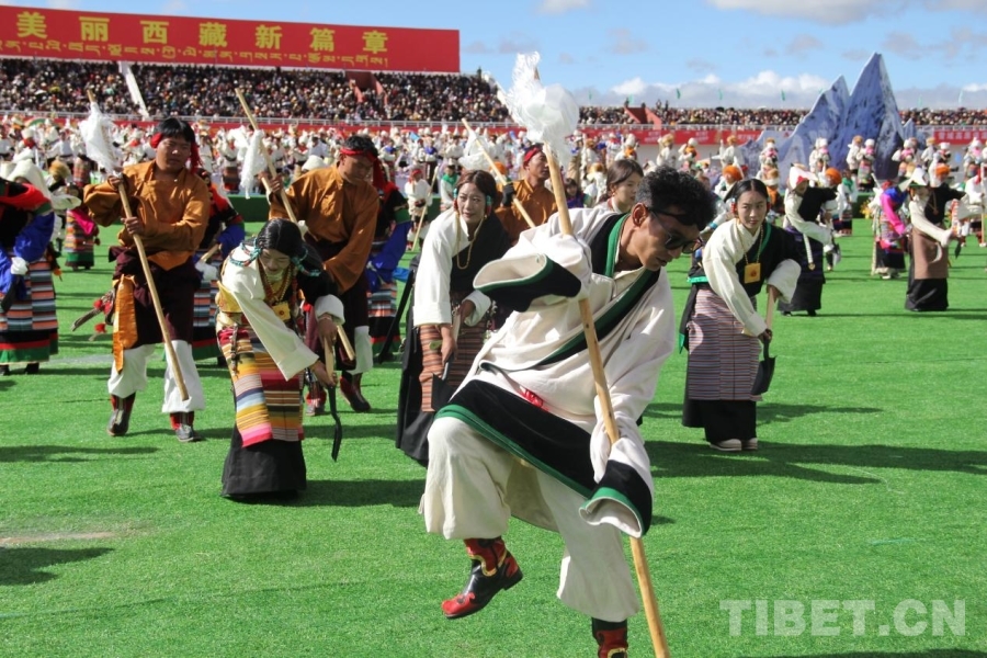 圖為那曲恰青賽馬節(jié)開(kāi)幕式歌舞表演 攝影:趙釗