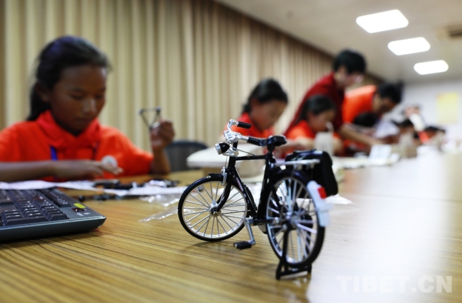 參觀結(jié)束后,孩子們與聊城當(dāng)?shù)刂驹刚咭黄鹌囱b以孔繁森同志的二八大杠自行車為原型創(chuàng)制的自行車模型文創(chuàng)產(chǎn)品,在動(dòng)手動(dòng)腦中深刻感受孔繁森同志勤政、愛民、廉潔的高尚品質(zhì)。孩子們還觀看了電影《孔繁森》。