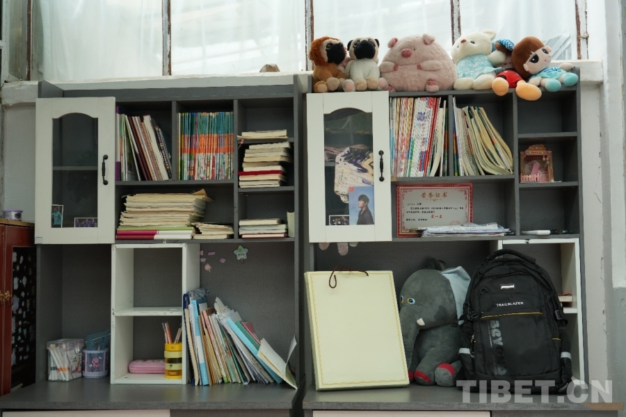 圖為羅啟明、尼吉女兒的書桌,右下角為中央代表團(tuán)阿里分團(tuán)贈(zèng)送的書包 攝影:馮重霖