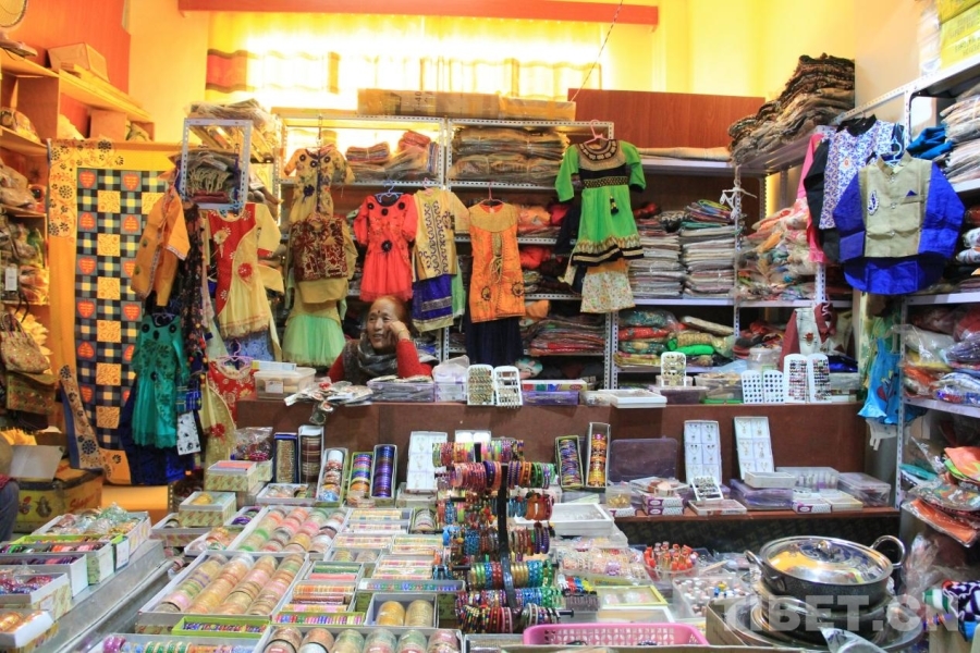 走進(jìn)市場(chǎng),濃郁的尼泊爾風(fēng)格迎面而來。精致生動(dòng)的手工藝品、各色各樣的尼泊爾服飾、夸張華美的首飾、風(fēng)味多樣的香制品,構(gòu)成了極具特色的商業(yè)品類。尤其是手工藝品,一個(gè)一價(jià),各個(gè)不同,甚至有些瑕疵也不耽誤有顧客欣然購入。在這里,咖喱、巧克力、鍋具、糧食等生活用品也能買到,品類不可謂不豐富。尼泊爾店主們各有生意經(jīng),他們用不同的語言與不同的客戶交流,推銷著自己的特色商品,在討價(jià)還價(jià)中逐漸適應(yīng)在異國經(jīng)商,適應(yīng)普蘭,適應(yīng)現(xiàn)在安穩(wěn)滿足的生活。