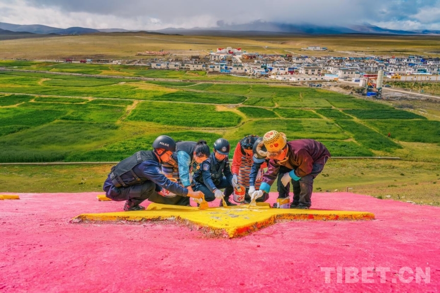 中國西藏網(wǎng)訊 國慶節(jié)前夕,西藏邊檢總站日喀則邊境管理支隊崗巴邊境派出所民警攜手轄區(qū)群眾,共赴中印邊境吉汝村為國旗和黨旗描紅,以行動獻(xiàn)禮國慶。(中國西藏網(wǎng) 通訊員/葉軼 記者/趙振宇)